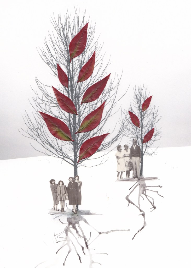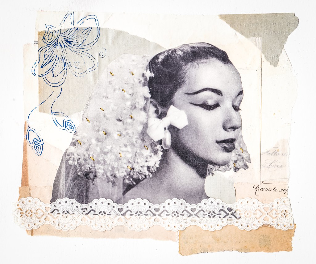 Si avvicina al collage analogico nel 2018 con la creazione del lavoro Ponte Alto 6, intrecciando fotografia, documenti famigliari e disegno.