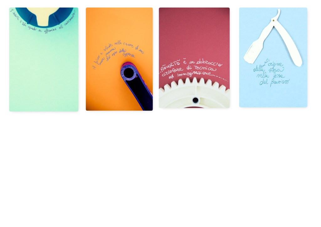 Ho trovato molti prodotti che a guardarne bene alcuno, ti accorgi quanto e come sono cambiate le epoche e così la nostra quotidianità. Li ho osservati attentamente per cercare la forma di una nuova immagine, dove gli oggetti diventano qualcosa di diverso attraverso la nostra immaginazione.